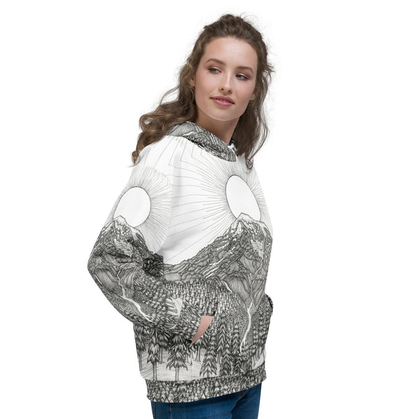 This comfy unisex hoodie has a soft outside with a vibrant print and an even softer brushed fleece inside. The hoodie has a relaxed fit, and it’s perfect for wrapping yourself into on a chilly evening.